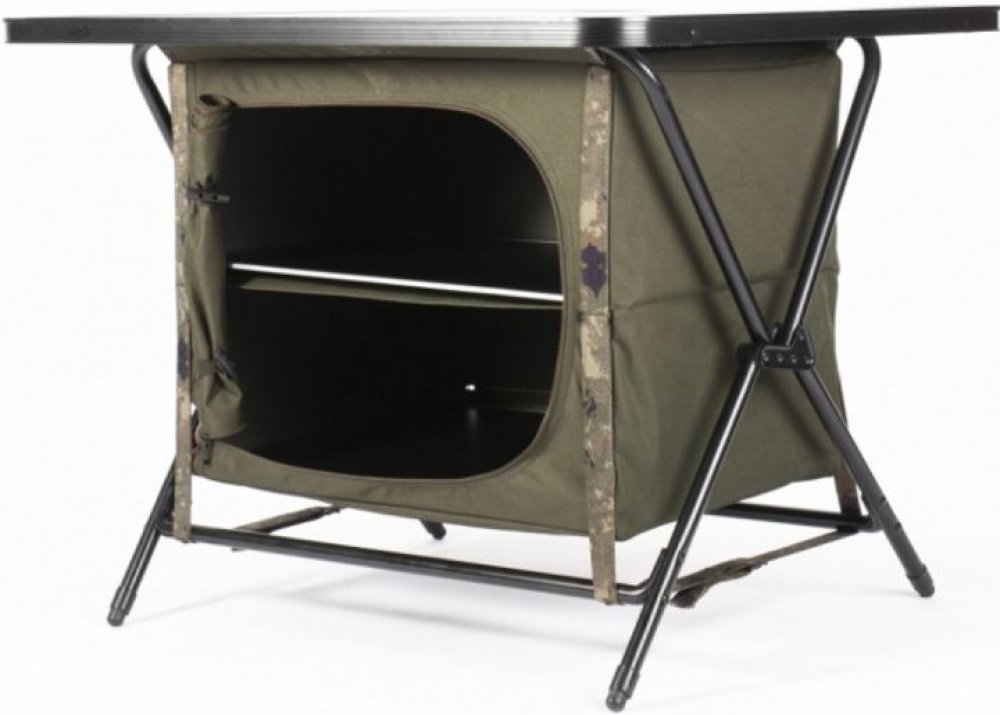 Obsahuje dvě odjímatelné vnitřní police s oboustranným přístupem na zip a elastickými připínacími zády. Otočné nastavitelné nožičky zajišťují, že Bank Life Station bude ve vodorovné poloze na jakémkoliv terénu. Dodává se v kufříku se zipem pro snadné sbalení a rozbalení.