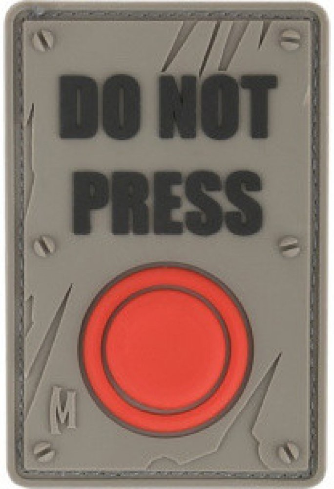 Nášivka Do not press, Maxpedition Nášivka je tvořena z vystouplého tlačítka a nápisu "Nemačkat". Swat verze má tlačítko červené a verze glow bílé - v noci svítící. Schválně kolik se najde inteligentů, kteří nápis nepochopí. Nášivky Maxpedition jsou vyráběny speciální metodou a jsou 3D, takže motiv vystupuje z povrchu nášivky. Nášivky jsou vhodné kamkoliv na suchý zip - na čepici, na batoh , na b...