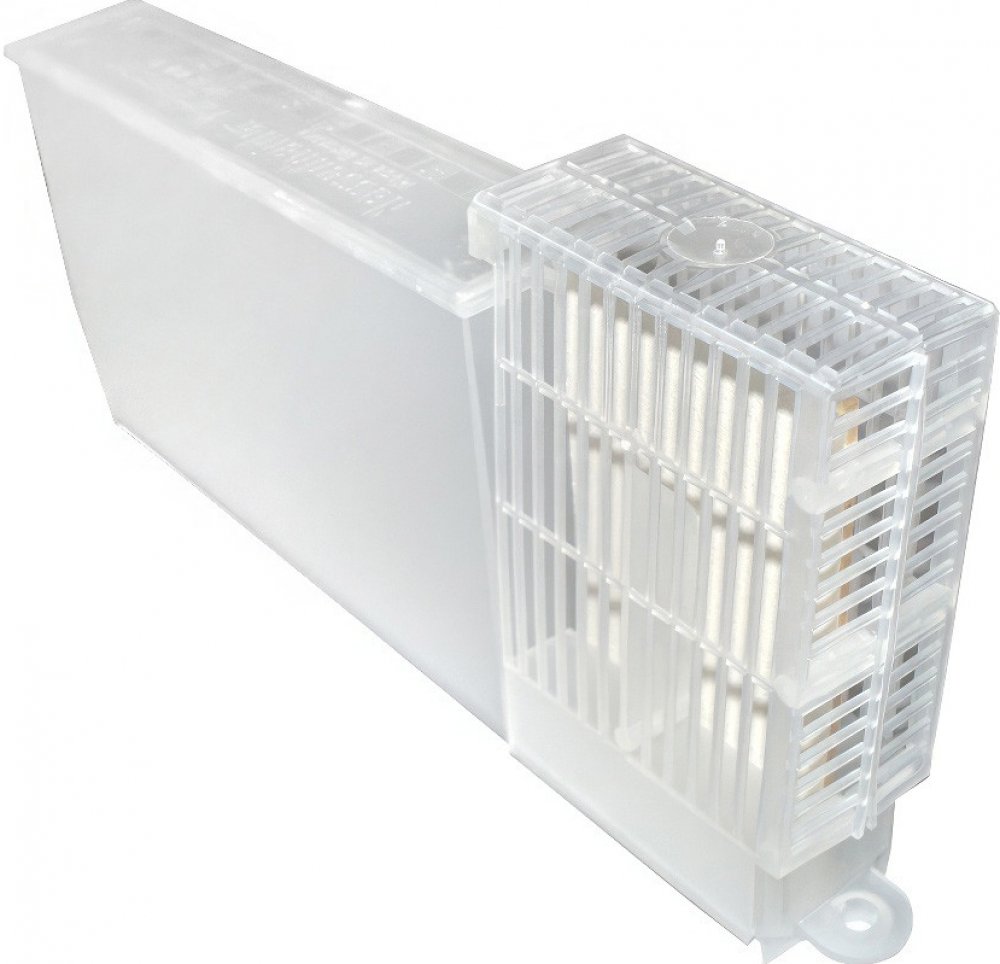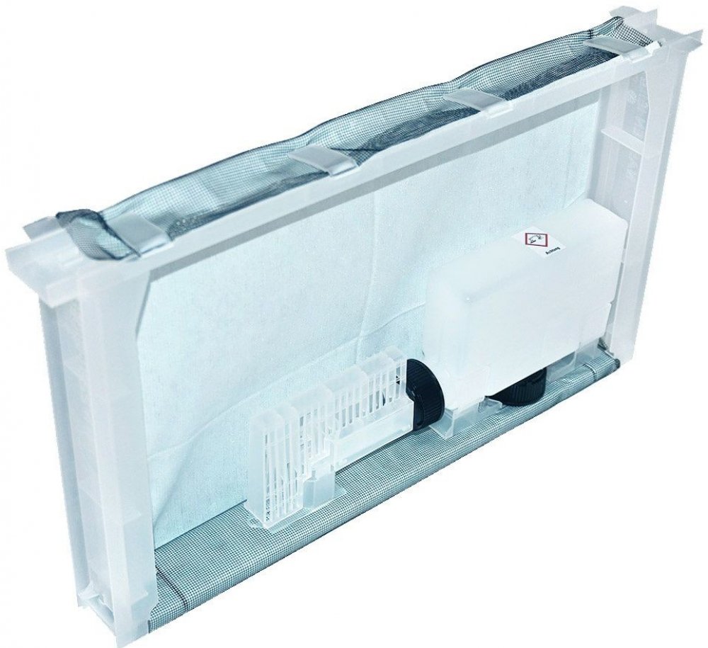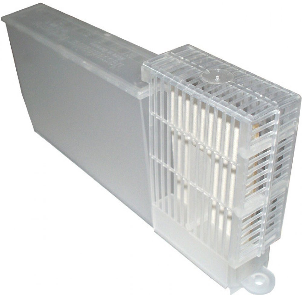 Nádoba odpařovače je tvořena uzavíratelnou lahví se stupnicí pro jednoduché a bezpečné plnění. Lahvička pojme 300 ml, což zajišťuje dostatek tekutiny i pro velké včelí kolonie bez nutnosti častého doplňování. Celá jednotka se snadno instaluje pomocí dvou šroubů do rámku a samotné zařízení lze pohodlně zavěsit na boční stěnu úlu.
