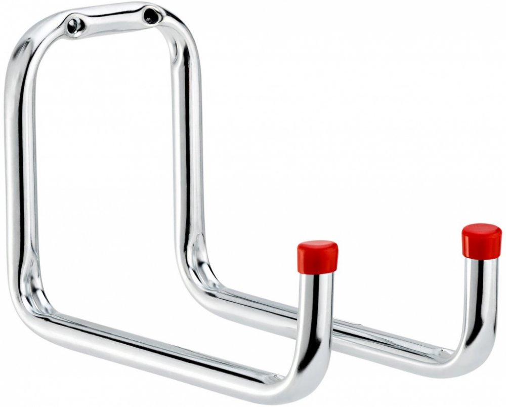 Dvouramenný nástěnný hák z ocelové trubky je plně pozinkovaný a má rozměry 120 x 160 x 90 mm. Je určen pro skladné uložení přístrojů na stěně. Nosnost je 10 kg, takže můžete držák použít univerzálně na jakékoli drobné přístroje.