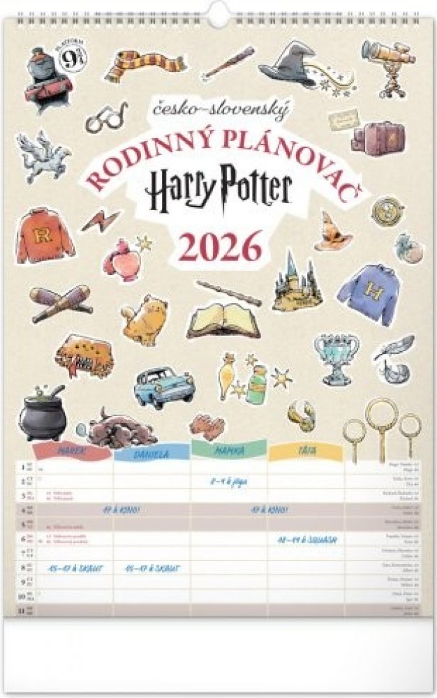 česko-slovenské kroužkové Presco Group rodinné nástěnné ilustrované měsíční 0 2026 pro kluky a holky Harry Potter