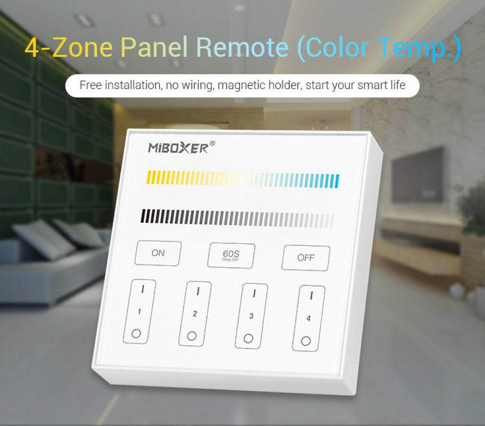 RF Touch profi 2,4GHz nástěnný ovladač/stmívač pro CCT LED pásky pro 4 zóny