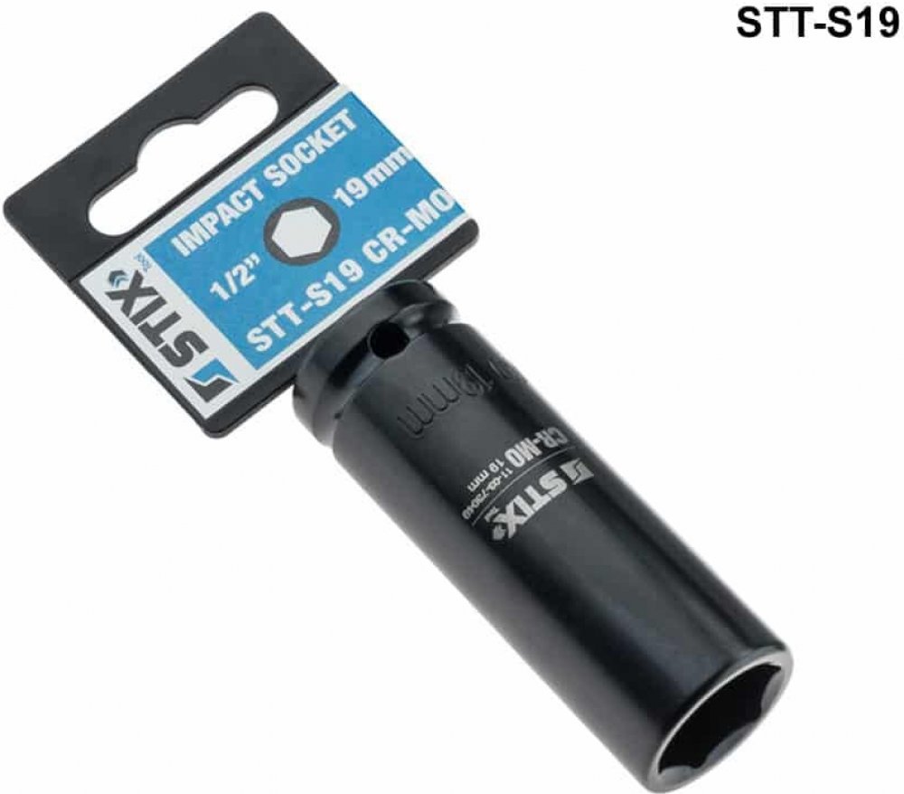 Speciální rázový nástrčný klíč STIX STT-S19, CR-MO/19 mm (ořech) na kolové šrouby a matice na alu kola lze použít s pneumatickými klíči (rázovými utahovacími pistolemi). Nezbytné nářadí do vaší dílny. Nástrčné klíče lze na klíč zaaretovat kuličkovou pojistkou nebo čepem a kroužkem (v závislosti na provedení klíče).