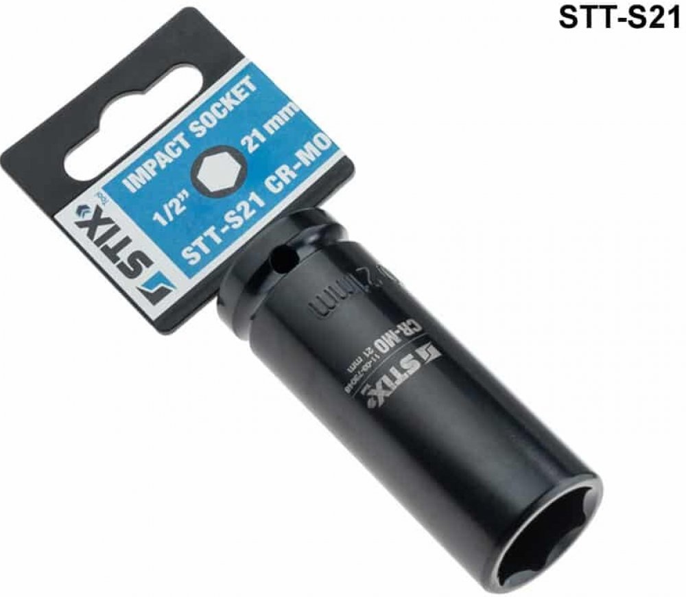 Speciální rázový nástrčný klíč STIX STT-S21, CR-MO/21 mm (ořech) na kolové šrouby a matice na alu kola lze použít s pneumatickými klíči (rázovými utahovacími pistolemi). Nezbytné nářadí do vaší dílny. Nástrčné klíče lze na klíč zaaretovat kuličkovou pojistkou nebo čepem a kroužkem (v závislosti na provedení klíče).