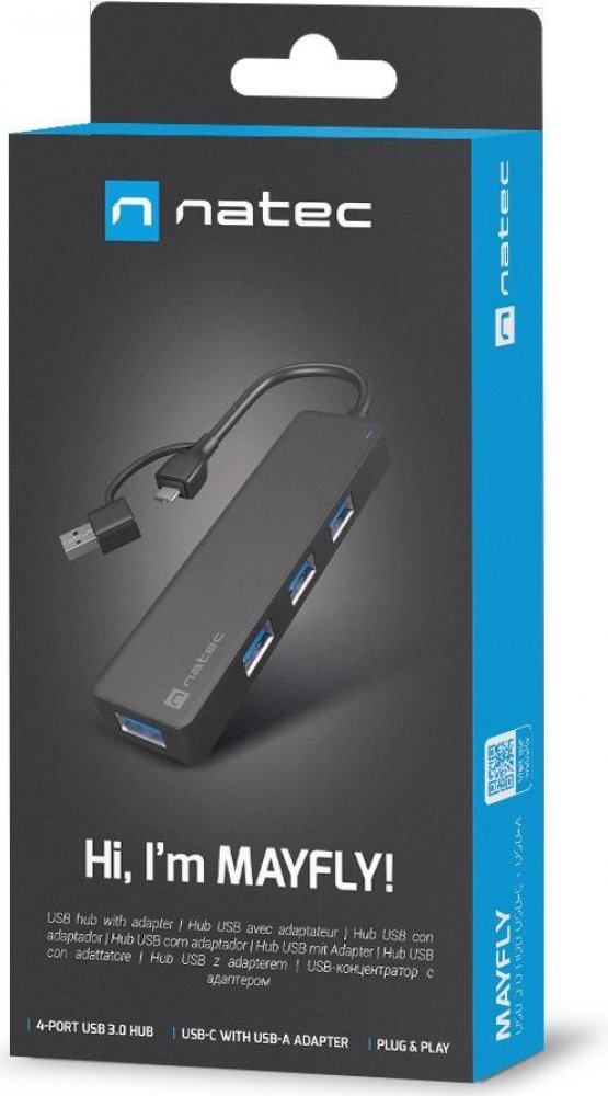 Hledáte kompaktní a funkční USB HUB, který vám umožní používat více příslušenství? Seznamte se s Natec Mayfly - USB rozbočovačem s až 4 porty USB-A 3.0 a adaptérem, který jej připojí jak k USB-C, tak ke klasickému konektoru typu A. Malé rozměry, vysoká rychlost přenosu dat a připravenost k provozu bez zbytečných ovladačů - to je Natec Mayfly. Udělejte více s vyšší rychlostí přenosu dat