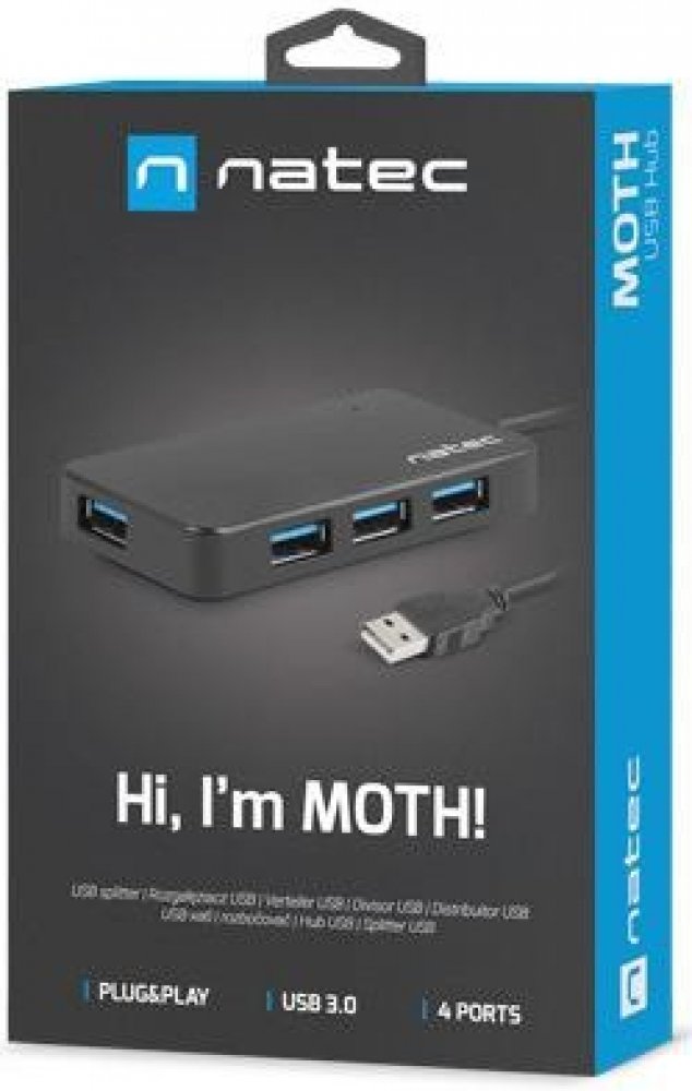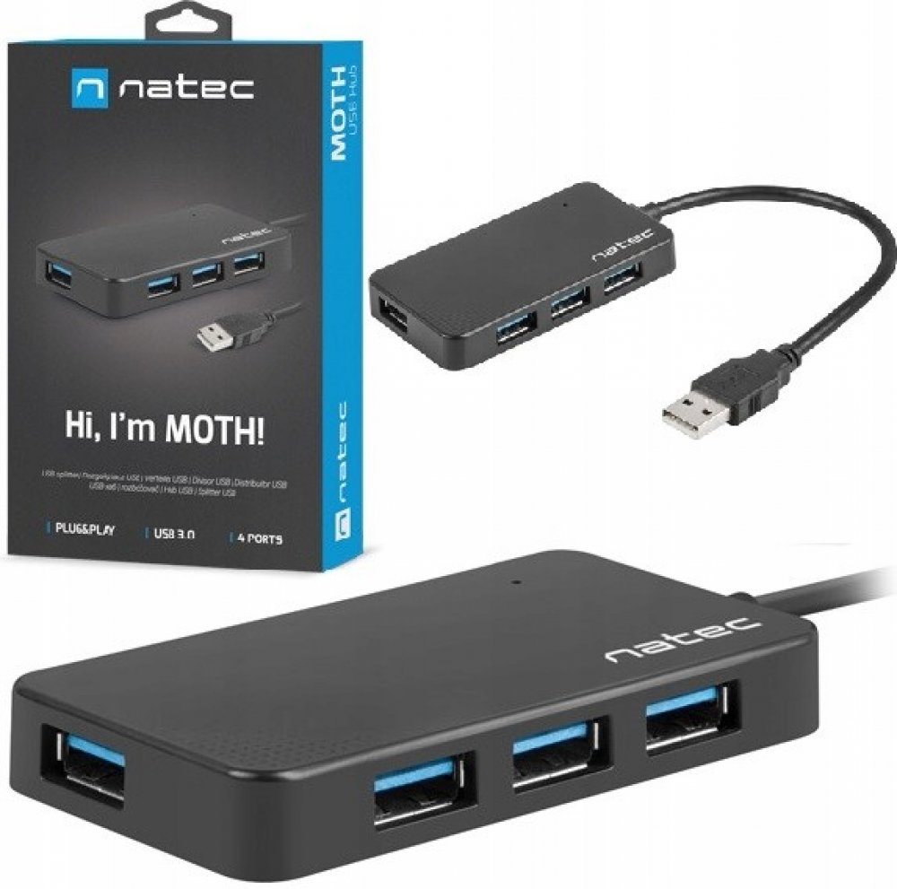 USB HUB MOTH je perfektním řešením pro notebooky a PC pro zvýšení počtu dostupných portů USB. Vestavěné 4 porty USB 3.0 zajišťují přenos dat při maximální rychlosti 5 Gb/s. Díky své malé velikosti nezabírá mnoho místa, lze jej skrýt téměř kdekoli! Technické parametry
