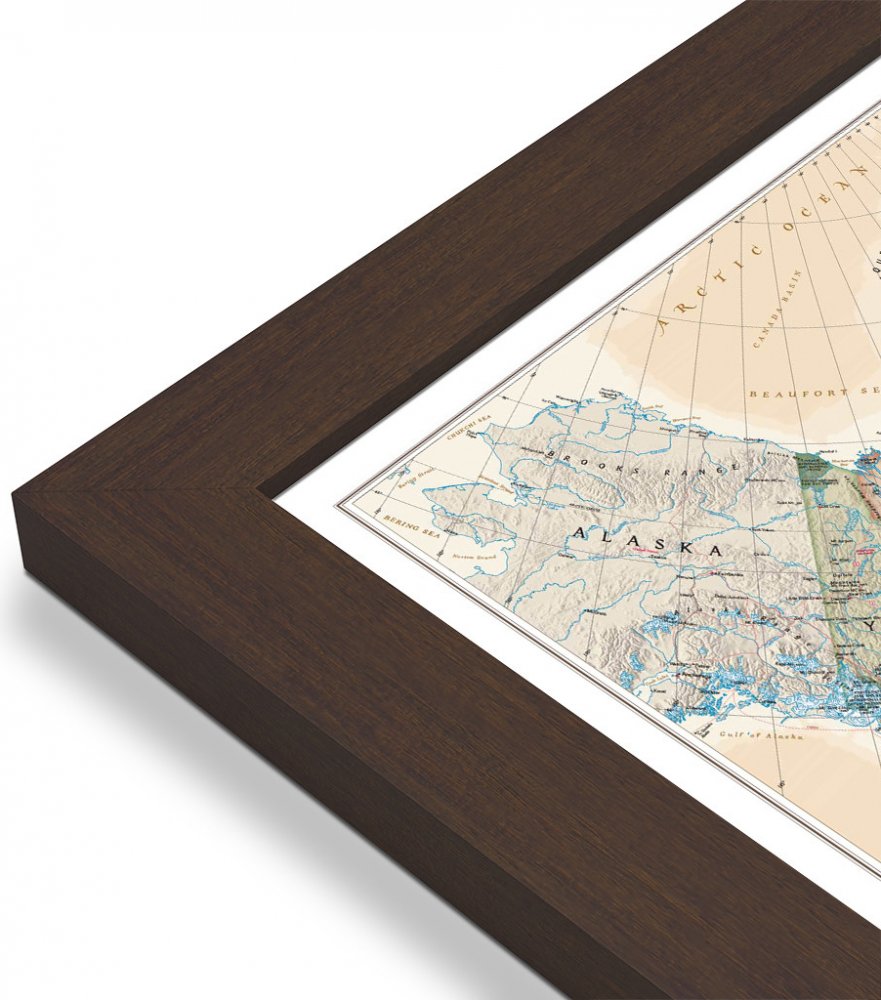 Rámované mapy jsou podlepeny na odhlehčené desce, která umožňuje do map zapichovat vlaječky nebo špendlíky. Decentní černý nebo stříbrný hliníkový rám promění každou mapu v luxusní interiérovou dekoraci.