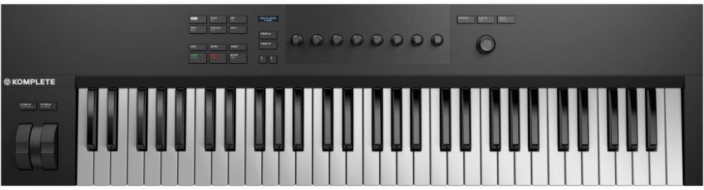 Smart keyboard kontrolér pro virtuální nástroje a efekty. Přináší polo-vyváženou custom NI klaviaturu s 61 klávesami. OLED displej nabízí snadnou navigaci. Kontrolér obsahuje 8 parametrických knobů citlivých na dotek, ergonomické kolečka pro ovládání pitch a mod, 4 tlačítka pro navigaci a přístup k zvukovým bankám. Jednoduché prohledávání založené na tagech nabízí možnost zvukové ukázky. Smart Play umožňuje hru akordů, arpeggios a stupnic jednou klávesou. K dispozici je predmapované ovládání nástrojů a efektů Komplete plus množství doplňků Native Kontrol Standard (NKS) od špičkových výrobců prostřednictvím softwaru Komplete Kontrol. Plná podpora pro VSTi a VST FX. Kontrolér je integrován se software Maschine. Vybaven je vstupem pro sustain nebo expression pedál. MIDI I/O: USB. USB: 1 x Typ B. Připojení k PC: USB. Formát: NKS, VST, VSTi. Požadavky na hardware: Mac: procesor Intel Core i5 nebo vyšší, minimálně 4 GB RAM. PC: Procesor Intel Core i5 nebo vyšší, minimálně 4 GB RAM. Systémové požadavky: Mac: MacOS 10.12 nebo novější. PC: Windows 10 (poslední Service Pack). Napájení prostřednictvím USB 2.0. Kontrolér je dodáván s kolekcí nástrojů Komplete Instruments and Effects, software Komplete Kontrol a Maschine Essentials (plná verze software Maschine a 1,6 GB Maschine factory selection). Rozměr: 984 x 257 x 89 mm. Hmotnost: 4,70 kg. Barva: Black