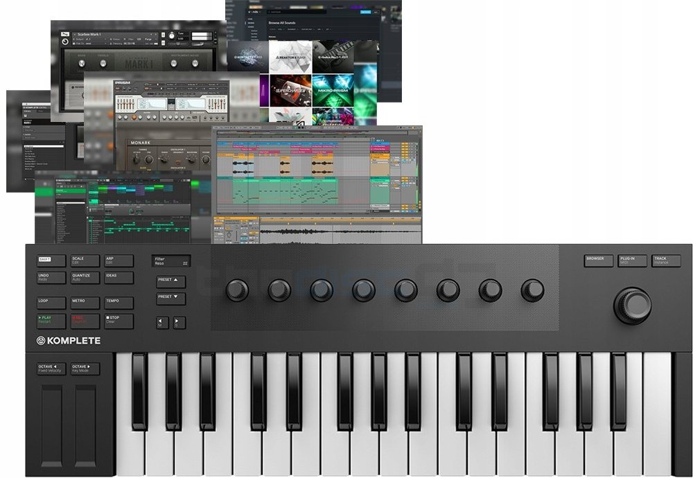 - Obsahuje řadu nástrojů a efektů: KOMPLETE KONTROL, MASCHINE ESSENTIALS (software MASCHINE a 1,6 GB zvuků, loopů a nástrojů) Ableton Live 10 Lite
