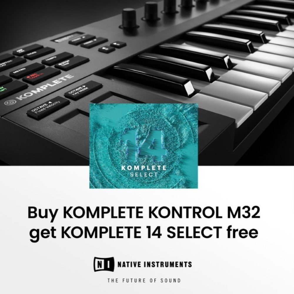 Komplete Kontrol M32 je dodáván s řadou digitálních nástrojů a efektů, kterých hodnota převyšuje cenu samostatného kontroléru – Maschine Essential (1,6 GB samplů), MONARK, REAKTOR PRISM, SCARBEE MARK I, KOMPLETE KONTROL SOFTWARE a ABLETON LIVE LITE.