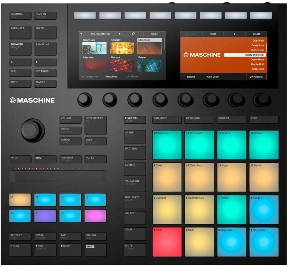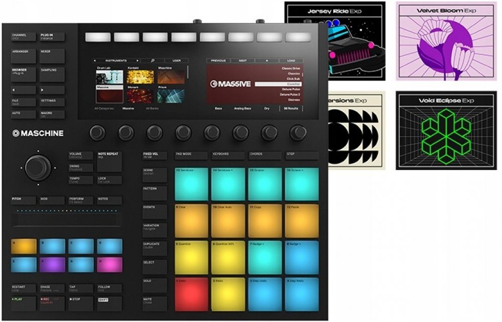 Groove produkční systém, MIDI kontrolér, sampler a sekvencer v jednom kompaktním zařízení. Třetí generace přináší mnohé novinky a vylepšení, které umožní zrychlit a zefektivnit hudební produkci a zjednodušit ovládání nejpoužívanějších funkcí v reálném čase. Pady jsou ještě větší a citlivější, dvojice velkých displejů přichází s vysokým rozlišením. Vylepšením prošlo i samotné jádro - Maschine MK3 je vybaven převodníkem schopným pracovat se samplovací frekvencí 96 kHz při rozlišení 24 bitů, přičemž spotřeba zařízení klesla. MASCHINE MK3 si vystačí i s napájením pomocí USB. Mnoha úpravami prošel i samotný software.NEJNOVĚJŠÍ AKTUALIZACE SOFTWARUPokud jste zmeškali nedávné aktualizace softwaru MASCHINE, zde je přehled některých našich oblíbených funkcí.IDEAS VIEWNahrávejte alternativní hudební fráze nebo nepřetržitě hrajte různé beaty. Poté je kombinujte a míchejte, dokud nenajdete groove, který vám sedne. Náčrt a aranžování skladeb nikdy nebylo jednodušší. S funkcí Ideas View můžete nahrávat alternativní hudební fráze nebo bez přerušení hrát různé beaty. Kombinujte, zkoušejte a experimentujte, dokud nenajdete ten pravý groove.PARAMETER SNAPSHOT MORPHINGFunkce Lock vám umožní zmrazit aktuální nastavení, upravit zvuk, změnit envelope a jedním tlačítkem se vrátit k původním nastavením. Spojte ji s novou funkcí Morph a objevte nové přechody nebo přidejte improvizace během vystoupení. Funkce Lock umožňuje zmrazit aktuální nastavení, prozkoumat nové úpravy nebo změnit envelope a okamžitě se vrátit zpět jediným stiskem. Spojte ji s funkcí Morph a objevte vzrušující přechody či dynamické improvizace pro vaše vystoupení.VARIATION ENGINENový Variation Engine je ideální pro přidání textury do skladby nebo pro nastartování nových nápadů. Použijte Randomize k vytvoření nových patternů a melodií v reálném čase. Nebo přidejte jemný swing do bicích pomocí funkce Humanize. Rozprouděte kreativitu s Variation Engine. Použijte Randomize pro okamžité generování čerstvých patternů a melodií, nebo přidejte dotek funkce Humanize pro přirozenější zvuk bicích. Perfektní pro přidání textury nebo hledání nových hudebních nápadů.