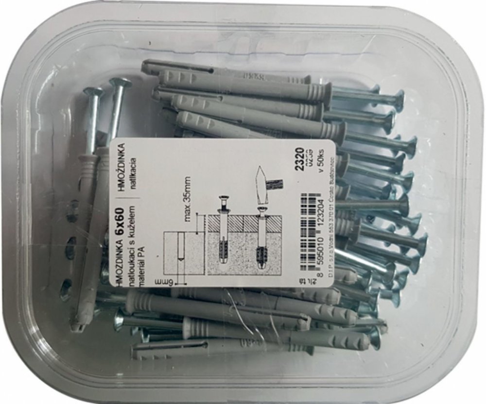 Natloukací hmoždinka, 60 mm, ø 6 mm, 50 ks 23204