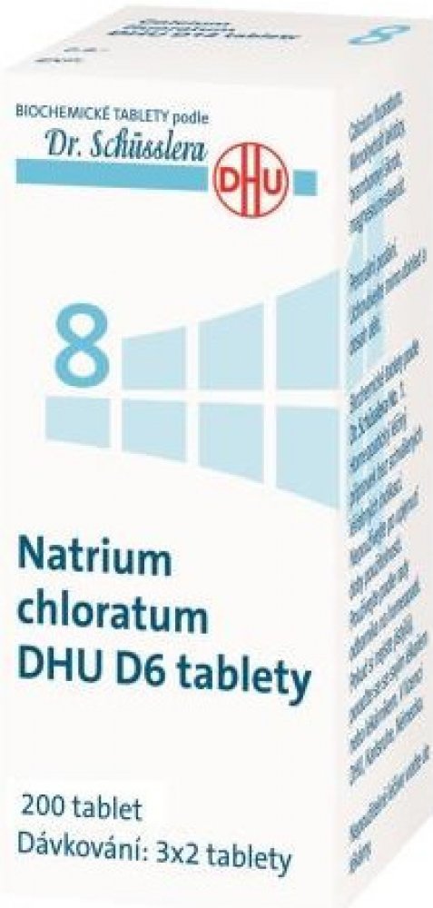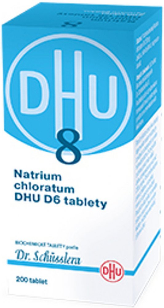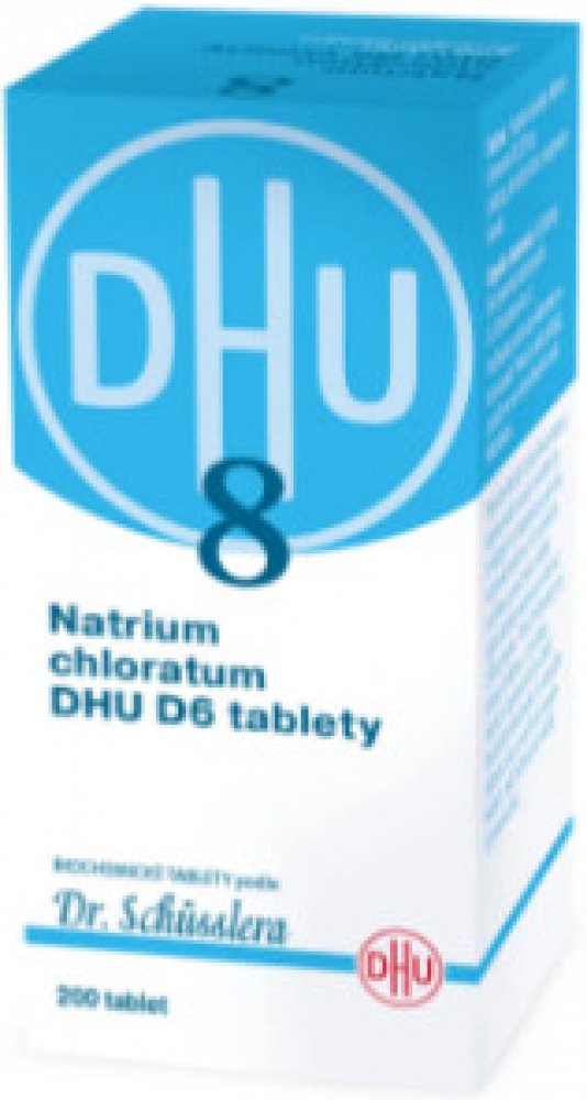 Natrium chloratum DHU je homeopatický léčivý přípravek bez schválených léčebných indikací. Biochemické tablety podle Dr. Schüsslera No. 8. Tzv. Schüsslerovy soli. Používejte podle rady odborníka na homeopatii.