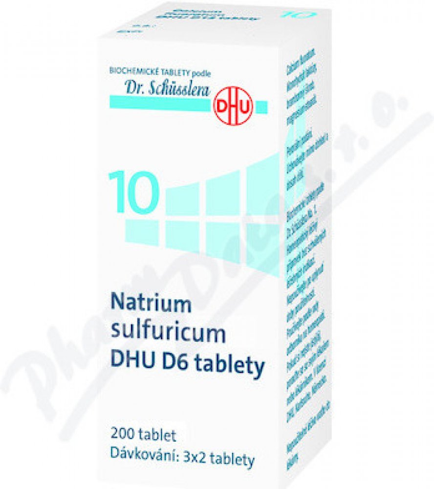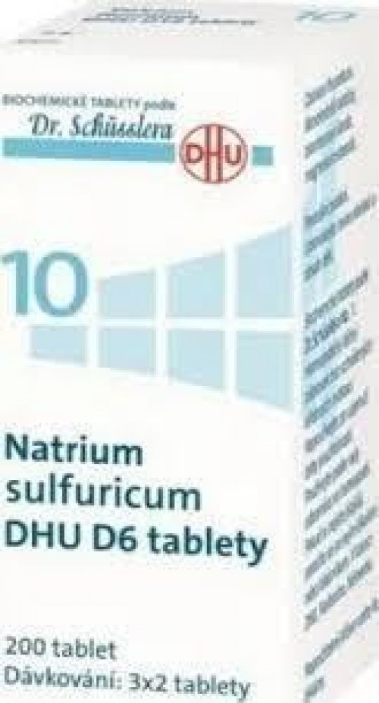 Natrium sulfuricum DHU je homeopatický léčivý přípravek bez schválených léčebných indikací. Biochemické tablety podle Dr. Schüsslera No. 10. Tzv. Schüsslerovy soli.
