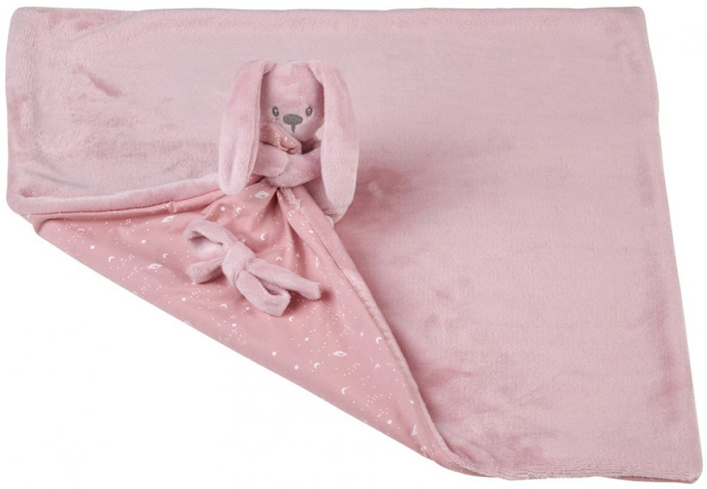 Kromě toho je vybavena mini plyšovým zajíčkem, kterého mohou malé ručičky a prstíky snadno uchopit. Hebký materiál dečky poskytuje příjemný pocit na dotyk. Navíc je vybavena upevňovací šňůrkou, aby se dudlík nestratil.