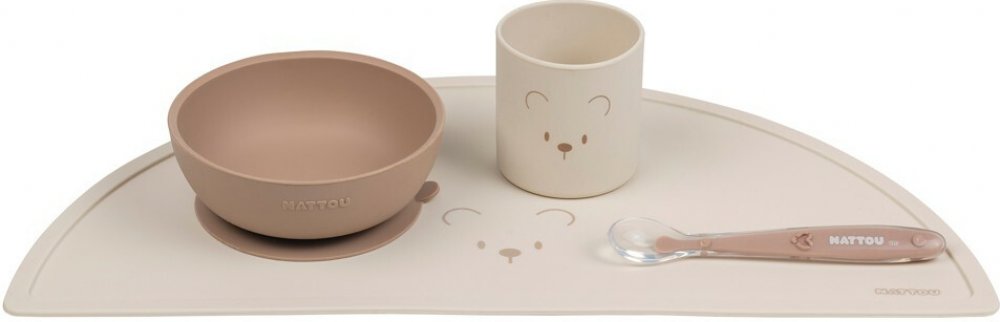 S touto elegantní silikonovou jídelní soupravou může vaše děťátko jíst bez obav. Zvýšený okraj talíře a přísavná podstava zabraňují vylévání jídla na zem. Lžička je dokonale přizpůsobena malým ručkám a ústům miminek a malých dětí, takže se stává ideálním pomocníkem při krmení a učení se samostatnosti. Vlastnosti: - Jídelní souprava pro miminka a malé děti: talíř, miska, sklenice a lžička z měkkého silikonu. - Ideální na jídlo i učení samostatného jídla. - Měkký, nerozbitný silikon, optimální velikost pro malé ruce a prsty. - Talíř a miska s přísavnou podstavou pro větší stabilitu. - Vhodné pro ohřev jídla v mikrovlnné troubě (kromě lžičky). - Materiál:Silikon, BPA free - Rozměry: 43 × 5,8 × 30 cm - Údržba: Vhodné do myčky nádobí Důležité: Než dáte zakoupený výrobek dítěti, odstraňte všechny části obalu. Adresa dodavatele: Jollymex N.V., Lindestraat 18, 9240 Zele, Belgie (T +3252444515 / e-mail info@nattou.eu)