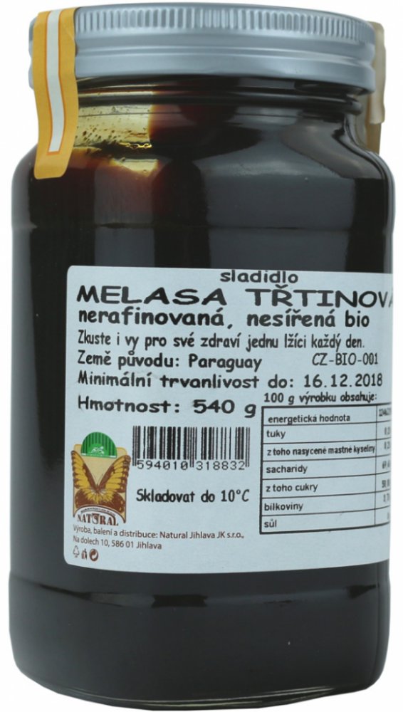 Složení: sladidlo třtinová melasa nerafinovaná a nesířená bio