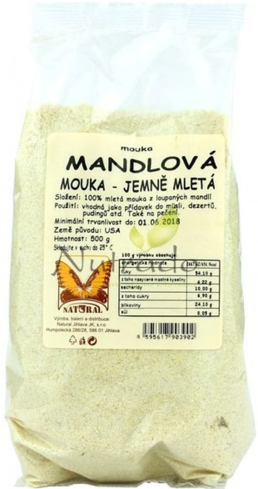 Složení: mletá mouka z loupaných MANDLÍ