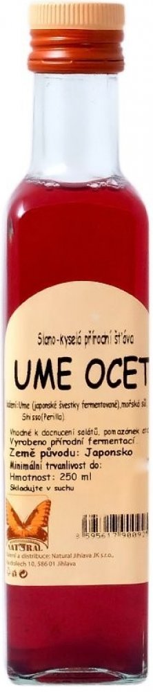 Červená tekutina, která se při kvašení švestiček vylučuje, se nazývá ume-su, v češtině se ujal název umeocet.