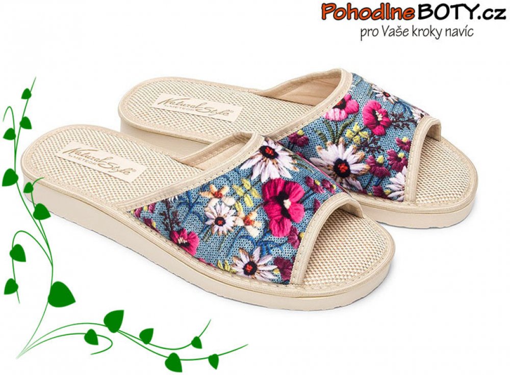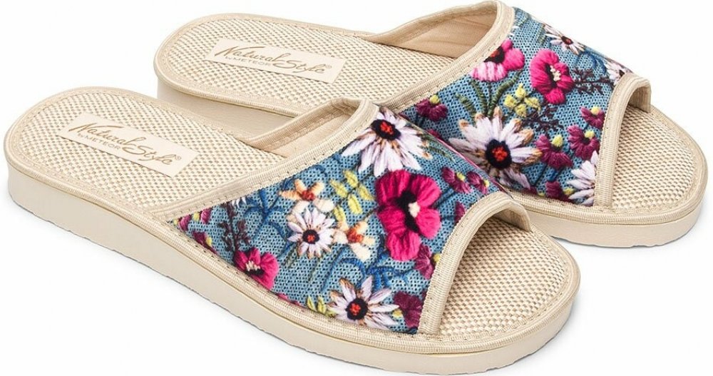 Klasické pantofle z přírodního materiálu s klasickou podešví.