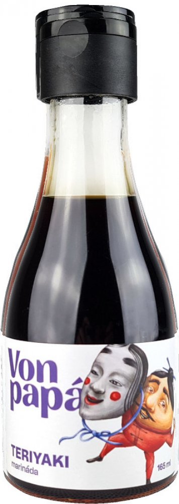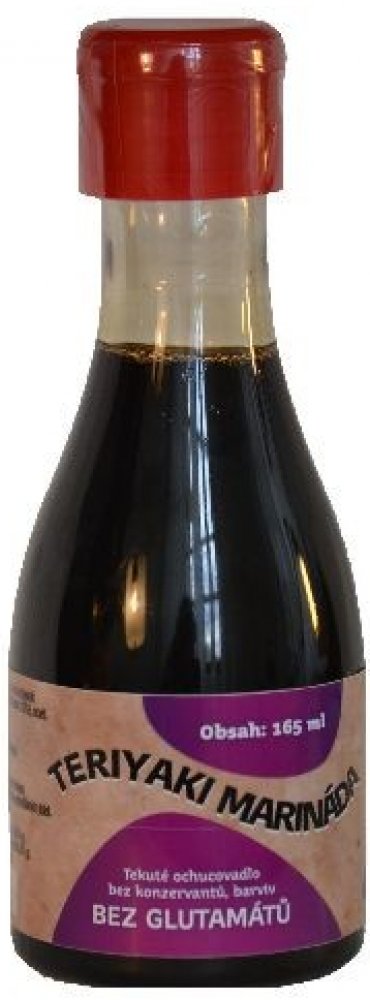 Teriyaki marináda má původ v japonské kuchyni. Slovo teriyaki vzniklo složením slov teri, které odkazuje na lesk omáčky způsobený obsahem cukru a yaki znamená v překladu grilovat. Při použití Teriyaki marinády nemusíte používat žádná další ochucovadla, jídlo je ochuceno přírodní a zdravou cestou. Omáčka neobsahuje konzervační látky, umělá barviva ani glutamát. Bez lepku. Složení: voda, fermentovaná sója, fermentovaná pšenice (lepek odstraněn při fermentaci), fruktósový sirup, jedlá sůl (max.15%), ocet, přírodní aroma koření, zahušťovadlo xanthan. Průměrné výživové hodnoty ve 100 ml výrobku: Energetická hodnota 517,3 kJ / 123,56 kcal Tuky
