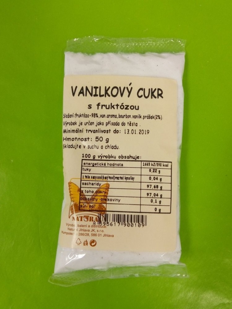 Vanilkový cukr s fruktózou vhodný pro diabetiky jako přísada do potravin.