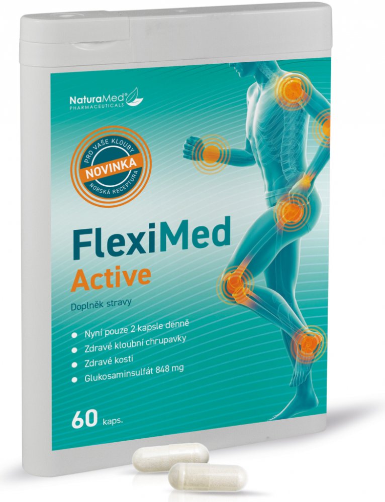 FlexiMed Active obsahuje 7 pečlivě vybraných látek v množství, které mají skutečně vliv. Základní složkou je glukosamin, který tvoří důležitou součást kloubních chrupavek.
