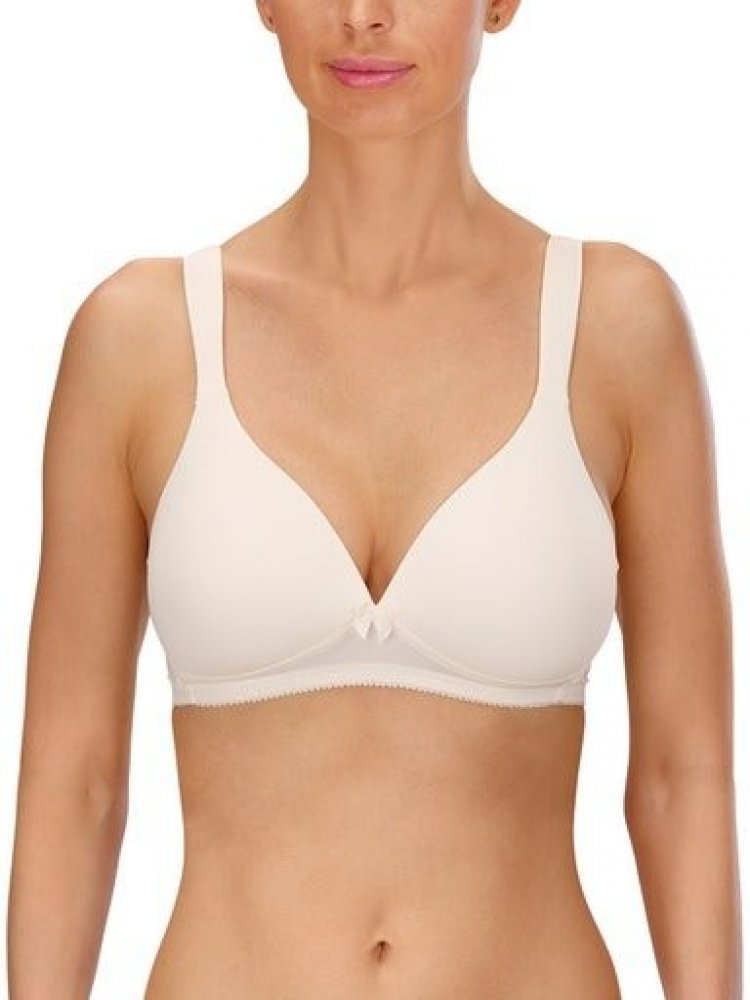 Hladká smetanová podrpsenka od německého výrobce Naturana. Bezkosticová podprsenka s jemně vyztuženými košíčky a se zdravotními ramínky pro pohodlné nošení. Nízký střed zdobí jemná mašlička. Zapínání je na dva háčky s třímístným posunem.