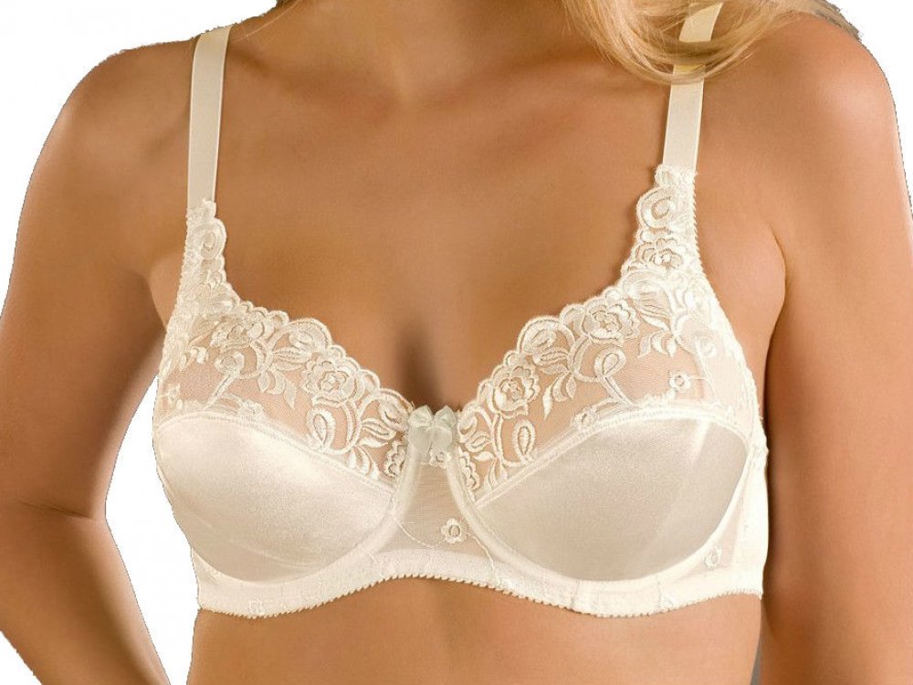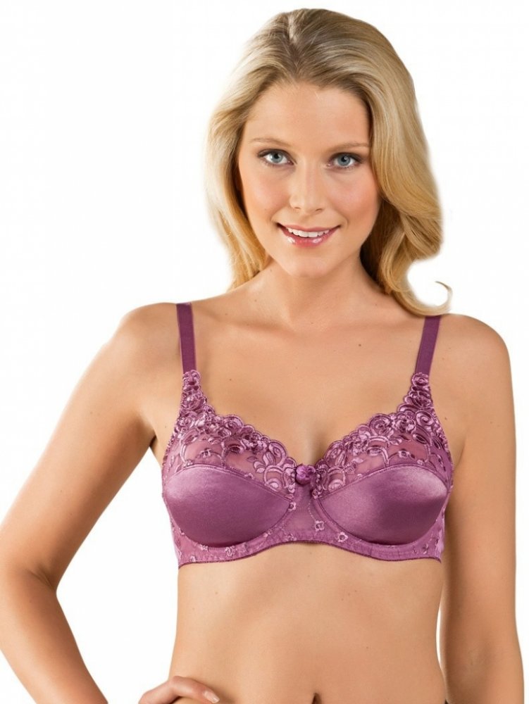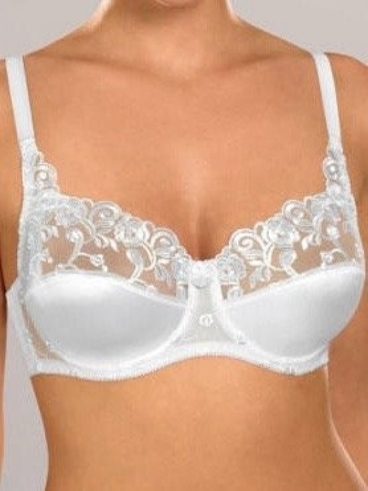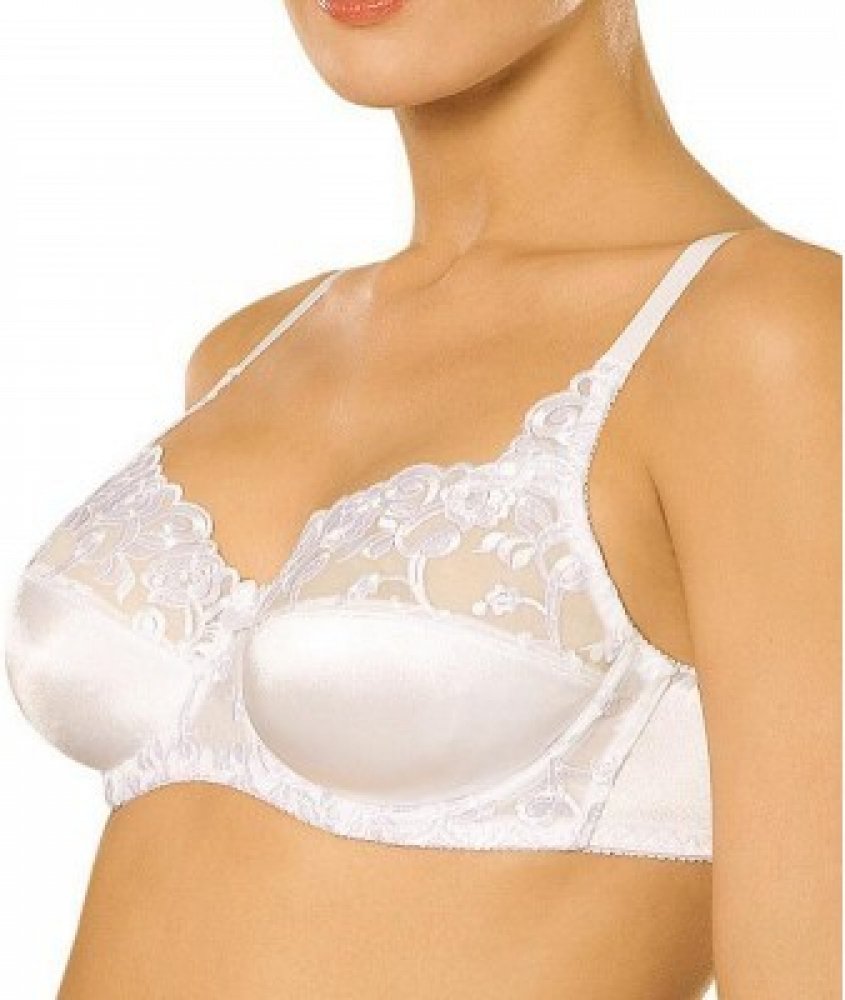 Skvěle padnoucí podprsenka má zpevněné košíčky s kosticí. Podprsenka má mezi košíčky malou mašličku.Podprsenka s krajkou Naturana 87543 je pokryta krajkou do poloviny košíčku, která přechází až na ramínka podprsenky. Její spodní část je hladká a lesklá. Celá podprsenka je zdobena malými kvítky.