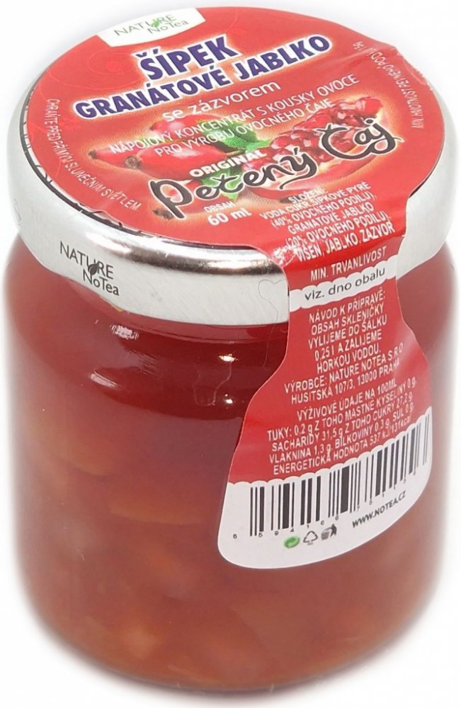 Nutriční hodnoty (ve 100ml nápoje):Energická hodnota: 537 kJ / 131 kcalTuky: 0,2 gz toho nasycené mastné kyseliny: 0 gSacharidy: 31,5 gz toho cukry: 27,2 gBílkoviny: 0,3 gVláknina: 1,3 gChlorid sodný (sůl): 0 gVýrobce: Nature Notea s.r.o., Husitská 107/3, Praha – Žižkov 130 00Země původu:Česká RepublikaObjem:60 ml