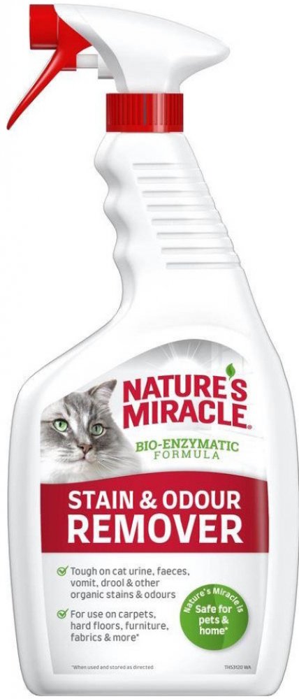 Nature's Miracle® Stain & Odour Remover Cat je produkt pro boj s každodenní kočičí špínou, účinný při odstraňování moči, výkalů, zvratků, slin a dalších organických skvrn a pachů. Díky rychle působícímu bioenzymatickému složení, které bojuje proti běžným nečistotám, které zanechávají domácí mazlíčci, je lze snadno odstranit a pachy neutralizovat. Složení na bázi bakterií produkuje enzymy, které odstraňují organické skvrny a pracují, dokud nečistoty neodstraní. Při použití a skladování podle pokynů je produkt bezpečný pro zvířata a váš domov, takže jej lze použít na koberce, tvrdé podlahy, nábytek a tkaniny. Nature's Miracle® Stain & Odour Remover Cat je dokonalým řešením pro odstranění každodenní kočičí nečistoty a zanechává lehkou a svěží citrusovou vůni.