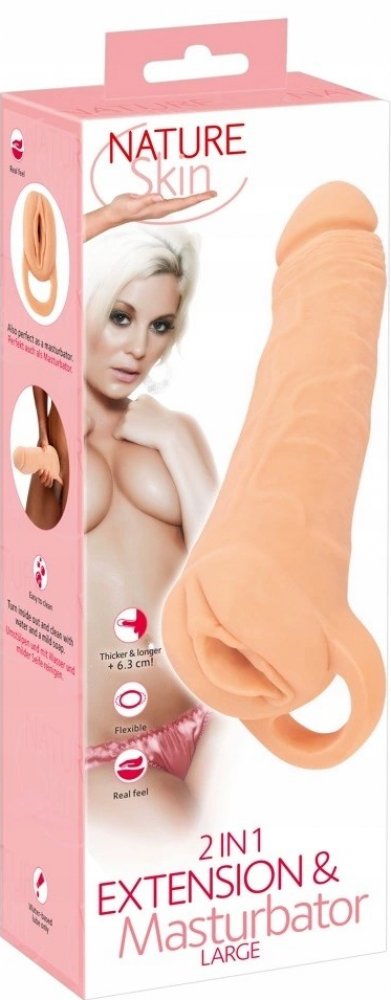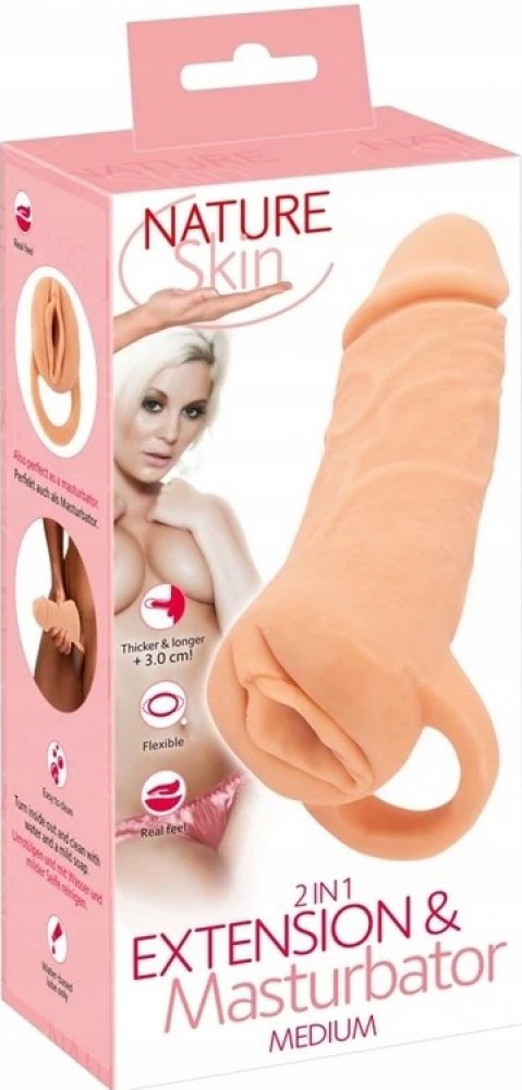 NÁVLEK NA PENIS PRODLUŽOVACÍ S VAGÍNOU 2V1 MASTURBÁTOR CYBERSKINČÍSLO VÝROBKU: 450855Masturbátor a zhušťovací nástavec 2v1 Nature Skin