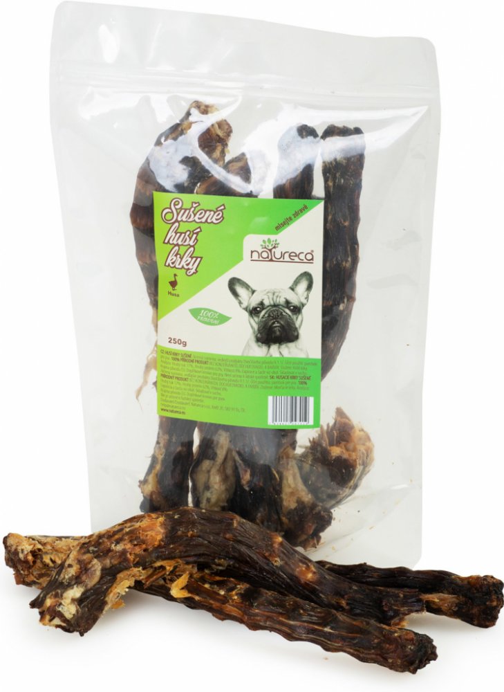 Husí krky jsou bez kůže a svou velikostí jsou vhodné pro střední a velké psy.