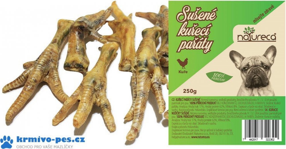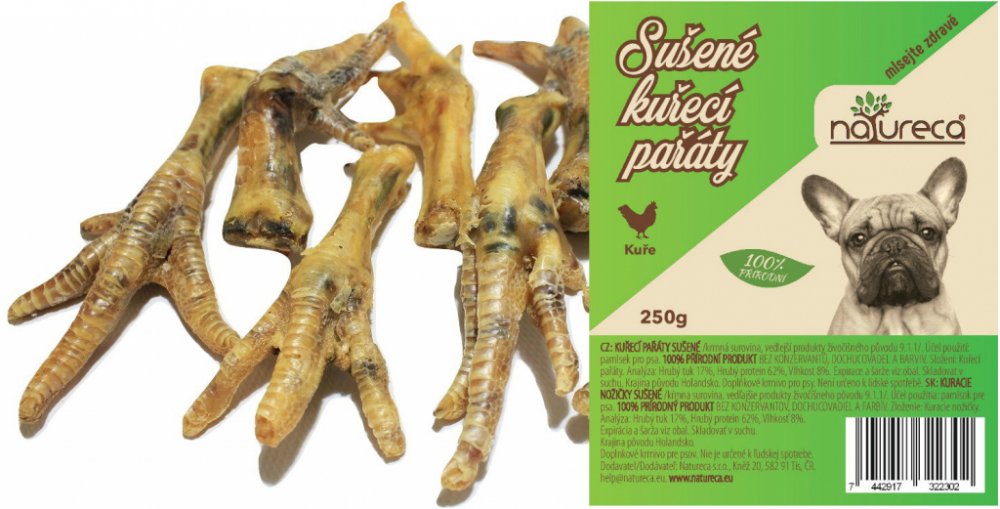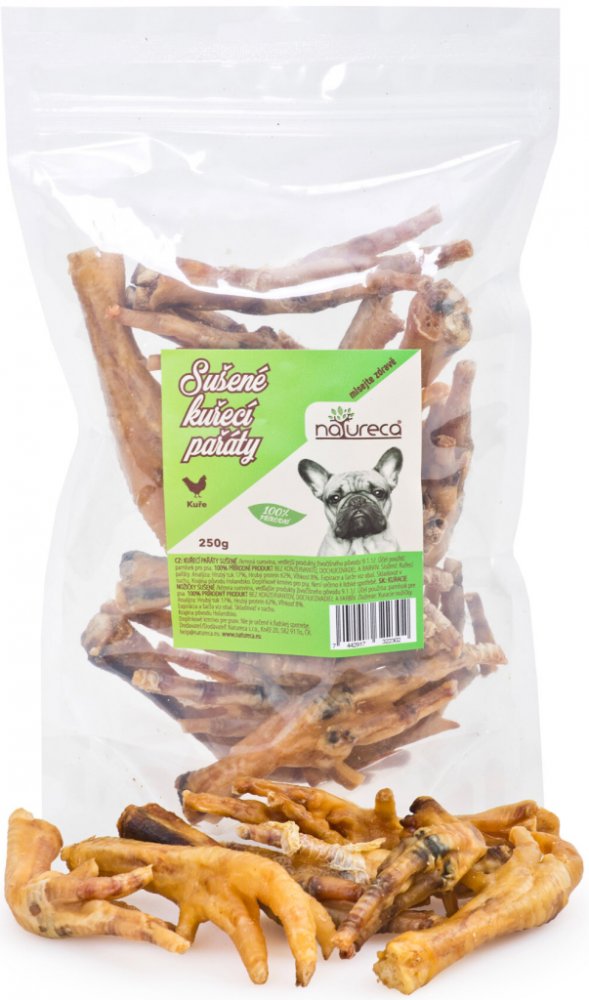 NATURECA pochoutka Kuřecí pařáty sušené 250g - Doplňkové krmivo pro psy. Kuřecí pařáty sušené 250 g. - KUŘECÍ PAŘÁTY SUŠENÉ 250 gr./krmná surovina/