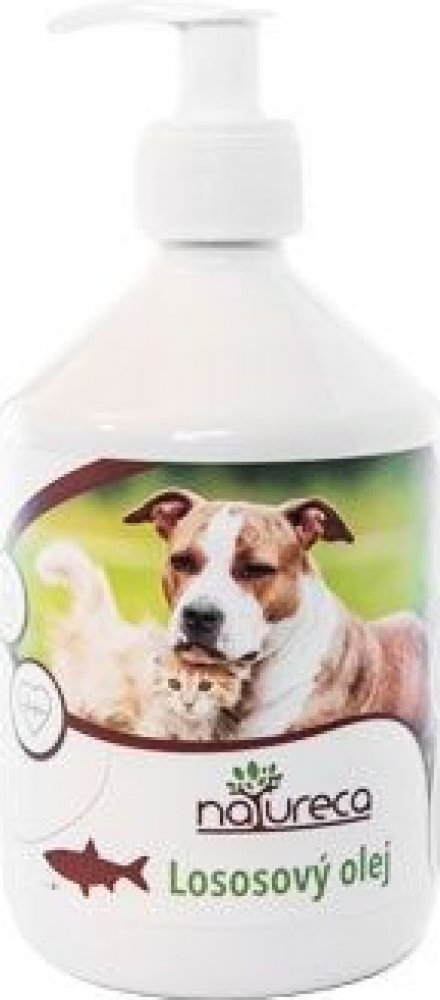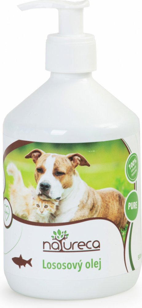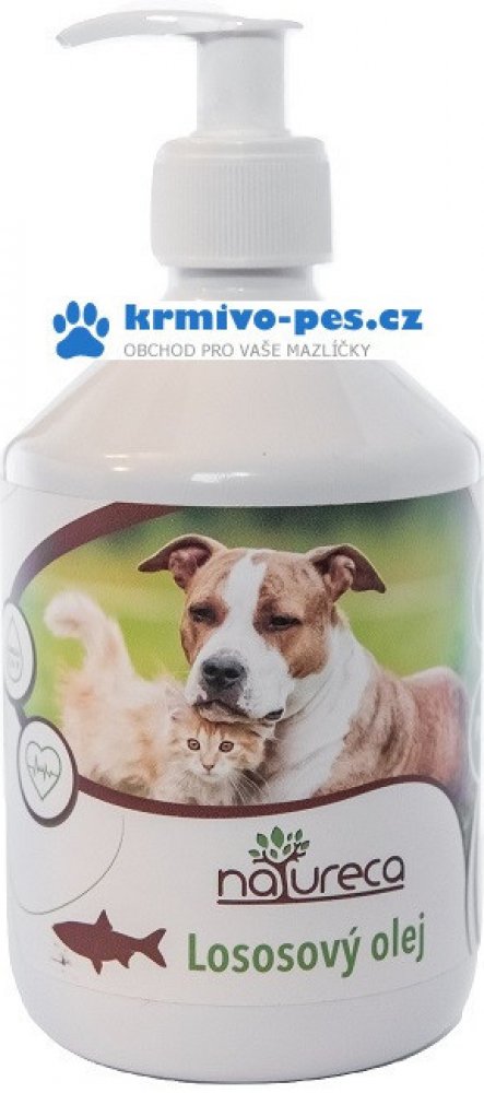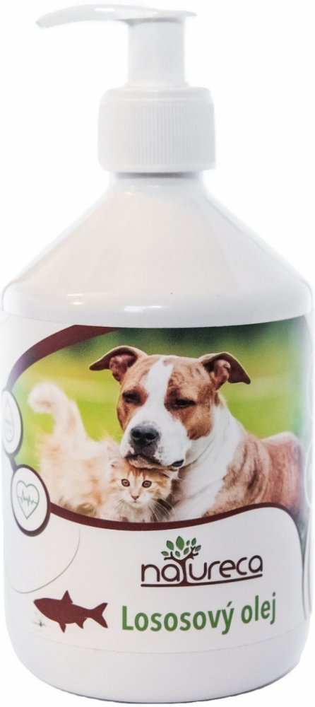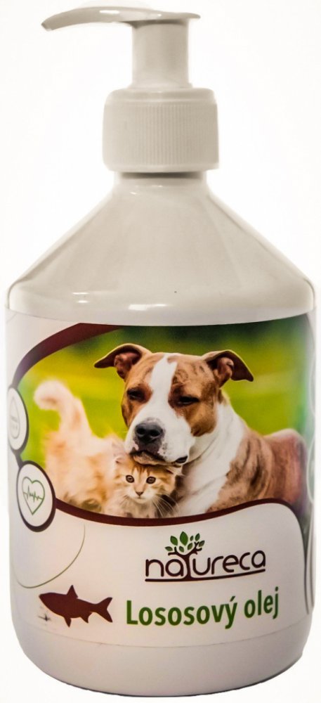 Lososový olej NATURECA je bohatý na omega 3, 6 a 9 mastné kyseliny. Aplikaci těchto extra mastných kyselin, které mají pozitivní vliv a příznivě působí na životu potřebné tělesné funkce psa i kočky pomáhame správnemu metabolickému fungováni organismu. Omega 3 mastné kyseliny mimo jiné udržují nízký krevní tlak a cholesterol. Omega 6 a 9 mastné kyseliny eliminujú zánětlivé reakce a také zajišťují udržení odolnosti a obranyschopnosti Vašeho zvířete.