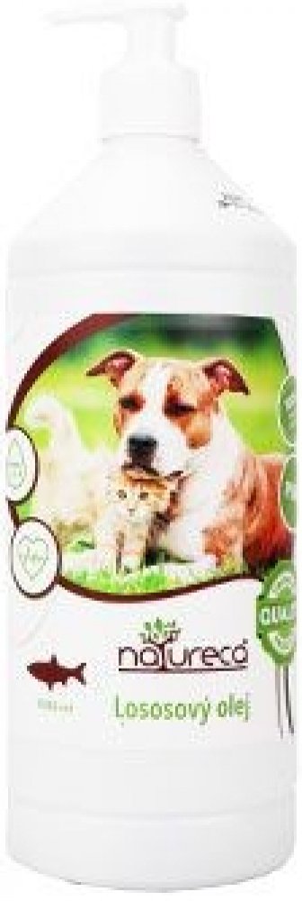 Lososový olej NATURECA je bohatý na omega 3, 6 a 9 mastné kyseliny. Aplikace těchto extra mastných kyselin, které mají pozitivní vliv a příznivě působí na životu potřebné tělesné funkce psa i kočky, pomáhá správnému metabolickému fungování organismu. Omega 3 mastné kyseliny mimo jiné udržují nízký krevní tlak a cholesterol. Omega 6 a 9 mastné kyseliny eliminují zánětlivé reakce a také zajišťují udržení odolnosti a obranyschopnosti Vašeho zvířete.