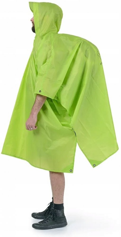 Lze jej využít mnoha způsoby. Klasické poncho do nepřízně počasí, které schová vás i váš batoh, nebo jako podložka a v neposledním případě jako výborný přístřešek, který postavíte díky trekovým holím a páru lanek (není součástí dodávky). Poncho má pro tyto případy ocelová očka v rozích a středu pro snadné vypnutí a postavení.