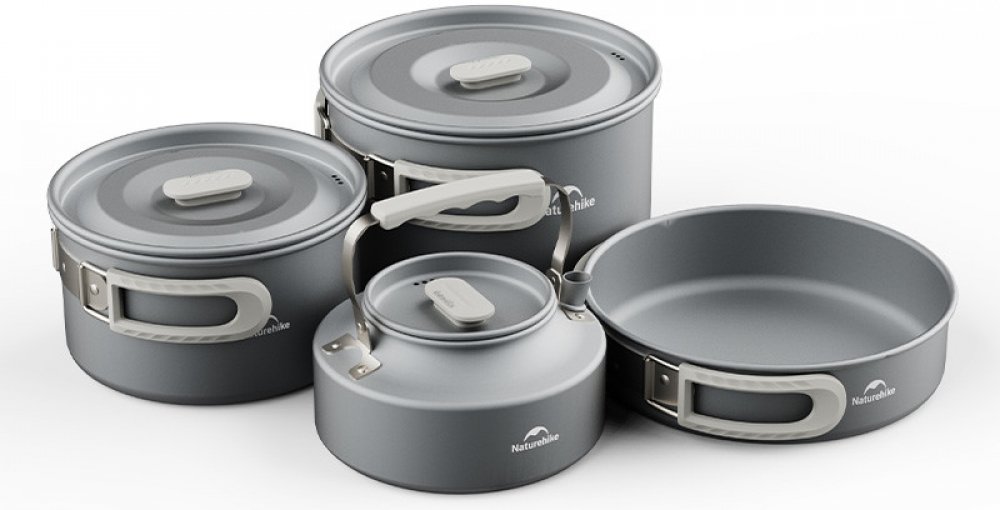 Na vašich výletech do přírody nesmíte zapomenout na kempingové nádobí Naturehike. Tato praktická 7 dílná sada nabízí nádobí jako je pánev, hrnec, poklička, rendlík a konvice. Při stolování budete moci využít i neostré kovové příbory. Materiálem tohoto kempingového nádobí Naturehike je hliník. Naturehike Hliníková sada nádobí pro 4–6 osob, 1186 g – var. 1 se hodí na výlety, dovolené ale i na chatu....
