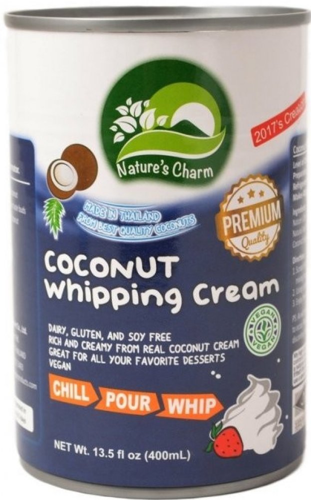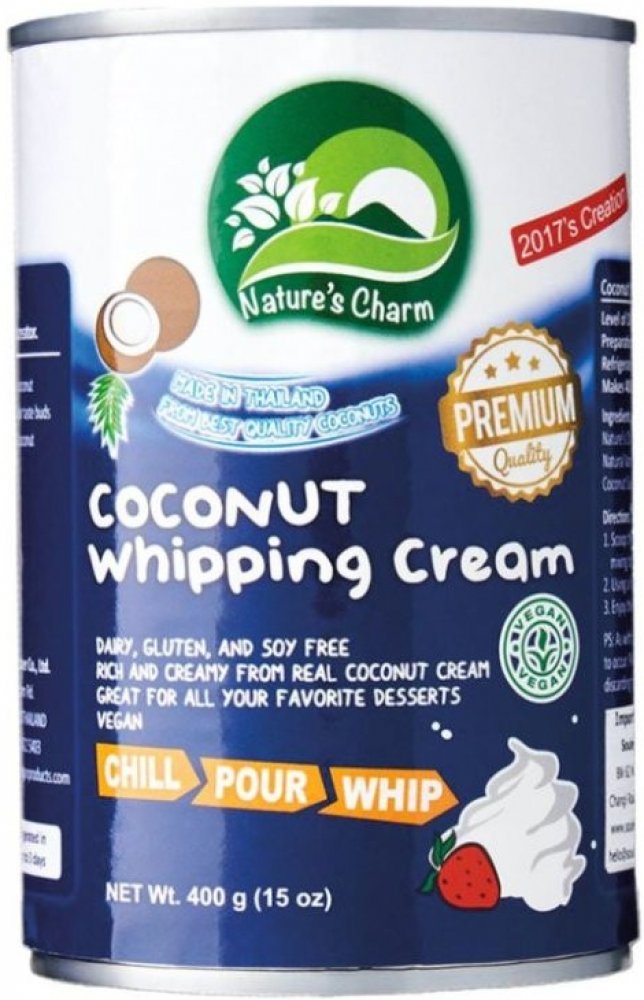 Nature's Charm kokosová alternativa šlehačky je veganská, rostlinná alternativa k tradiční smetaně. Tato šlehačka je vyrobena z kokosového mléka a je vhodná pro osoby s intolerance na laktózu nebo pro ty, kteří chtějí omezit konzumaci živočišných produktů.
