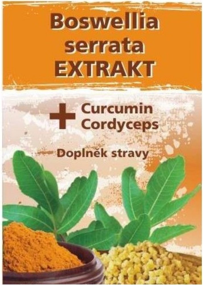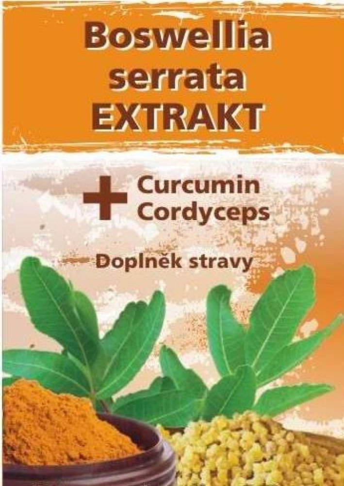 Přinášíme vám novou v synergii patentovanou kombinaci přírodních extraktů. Doplněk stravy.Boswellia serrata extrakt: obsahuje až 65% boswellové kyseliny doplněný v naší jedinečné formuli o další známé byliny jako je Curcumin extrakt (Curcuma longa), který obsahuje 95% curcuminoidů a Cordyceps extrakt s 30% polysacharidů. Boswellová kyselina se již tisíce let používá v arabii pro své skvělé účinky. Extrakty jsou jako obvykle baleny v celulózových vegan kapslích. Balení obsahuje 120 kapslí po 500 mg.