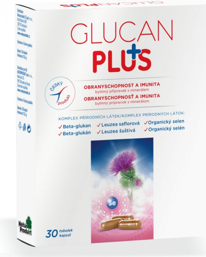 Komplex vitálních látek pro silný obranný systém. GLUKAN PLUS je kombinovaný přípravek s obsahem beta-glukanu, selenu a výtažku z leuzey saflorové.