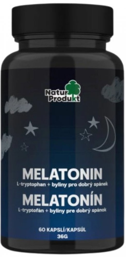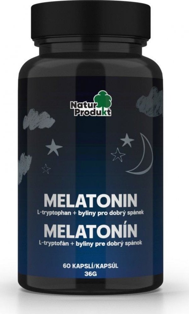 Naturprodukt 60 tbl kapsle spánek unisex 100 g Naturprodukt pro dospělé perorální bez příchutě Česká republika melatonin stres a spánek s okamžitým účinkem 60 0.49 mg Večer 1 tobolka denně před spaním Suché místo + pokojová teplota, Chránit před světlem/sluncem