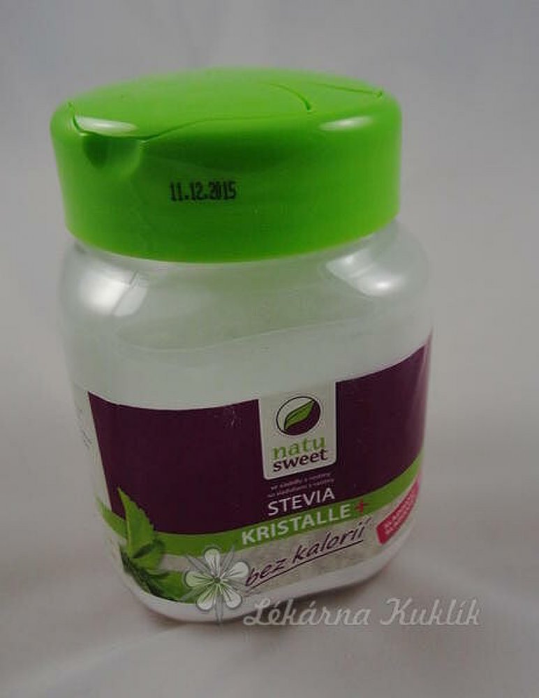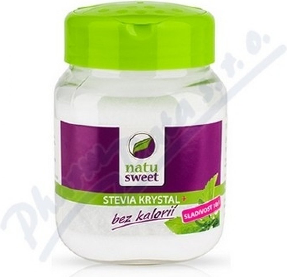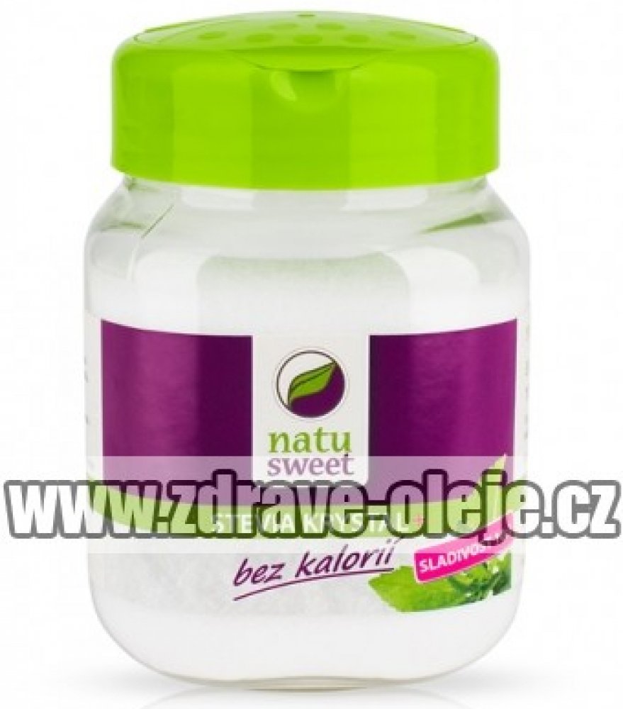 NatuSweet Stevia je sladidlo přírodního původu, které se získává z listů rostliny Stevia Rebaudiana Bertoni.Listy obsahují sladce chutnající látky, tzv. "steviol glykosidy". NatuSweet je proto ideální volba pro diabetiky. Steviol glykosidy mají až 300 krát větší sladivost než cukr.Brání vzniku zubního plaku na zubech a tím brání vzniku zubního kazu.NatuSweet Stevia: