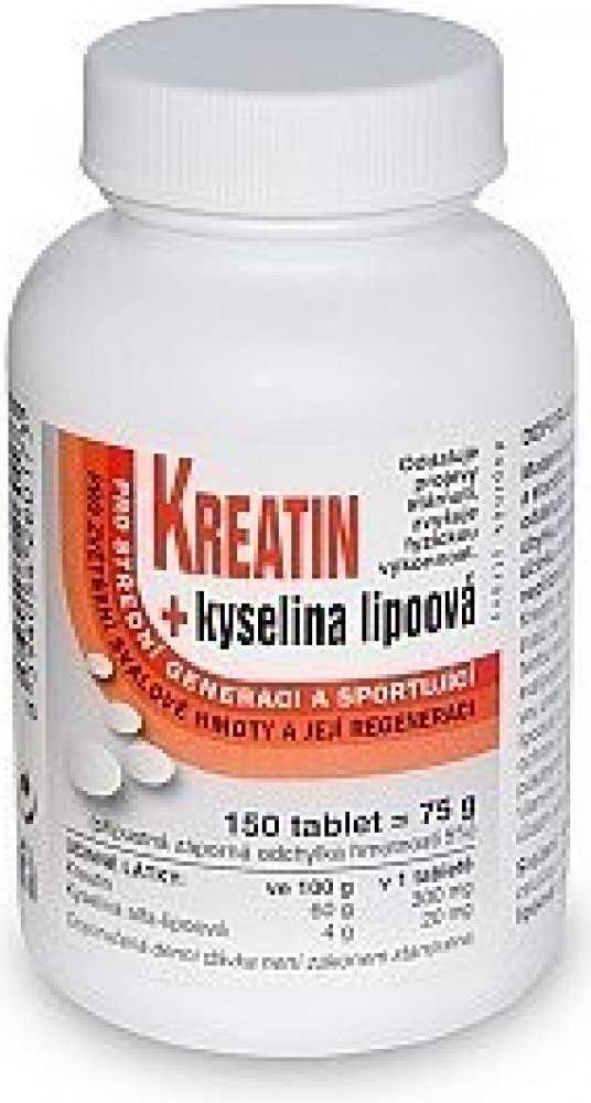 Jedna tableta obsahuje: kreatin 300 mg a kyselinu alfa-lipoovou 20 mg.