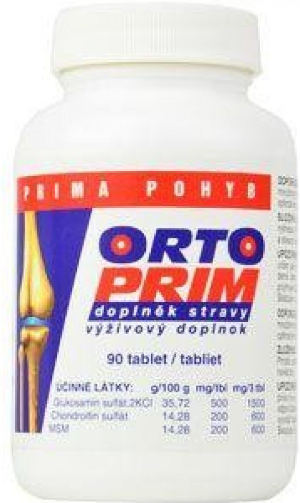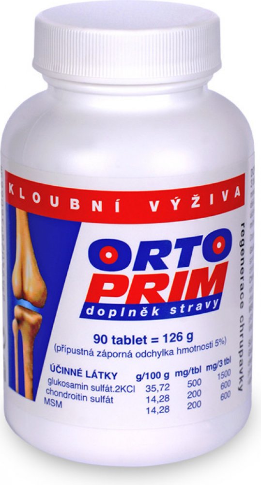 Naturvita Ortoprim 90 tbl. Popis produktu Komplex glukosaminu, chondroitinu a MSM je nepostradatelný při tvorbě a regeneraci kloubní chrupavky.Křemík, ve formě rozpustné ve střevním mediu, se váže na látky, tvořící pojivovou tkáň, má klíčovou úlohu při tvorbě kolagenu. Složení 1 tablety: 500 mg Glukosamin sulfát.2KCl, 200 mg Chondroitin sulfát, 200 mg MSM Dávkování: Užívejte 3 tablety denně. Balení: 90 tablet - dávka na 1 měsíc Upozornění: Doplněk stravy. Není určeno pro děti. Nepřekračujte doporučené dávkování. Uchovávejte při teplotě 5-25 °C. Nevystavujte přímému slunci. Ukládejte mimo dosah dětí. Výrobek není určen k používání jako náhrada pestré a vyvážené stravy a zdravého životního stylu. V naší nabídce naleznete také další přípravky na klouby. Informace o značce Naturvita Společnost Naturvita a. s. Veselá patří rozsahem svého sortimentu k významným producentům potravních doplňků v České republice. Při vývoji nových výrobků společnost zohledňuje nejnovější poznatky v oblasti zdravé výživy a spolupracuje se specializovanými zdravotnickými pracovišti. Výrobní provozy se nacházejí v obci Veselá přibližně 10 km na východ od krajského města Zlín. Celý sortiment je prodáván v síti lékáren a prodejen s výrobky pro zdravou výživu. Základní snahou společnosti je produkce kvalitních a cenově dostupných výrobků s vysokou užitnou hodnotou pro zákazníka.