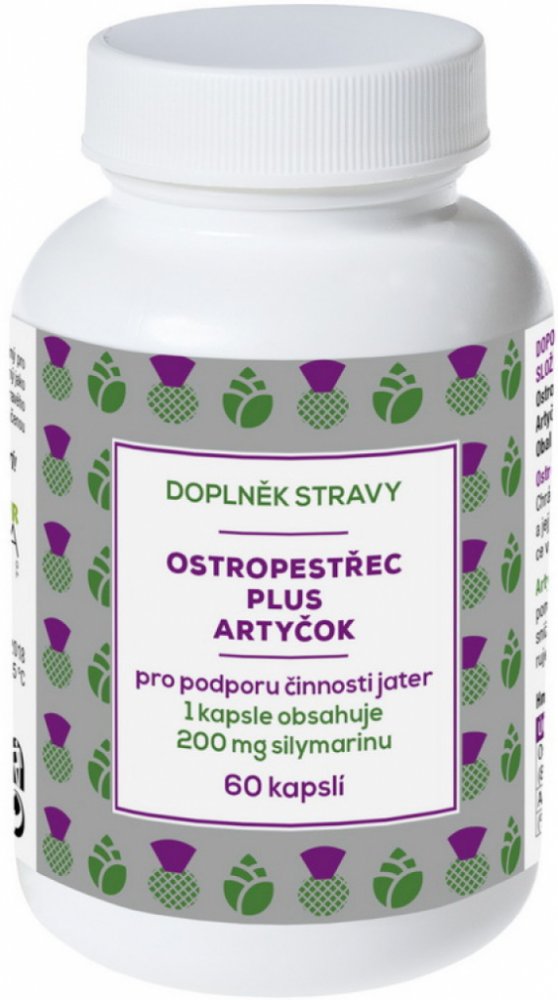 stravy. Ostropestřec mariánský je vynikajícím prostředkem pro játra a jejich funkci. Chrání jaterní tkáň a podporuje její regeneraci. Příznivě ovlivňuje jaterní funkci a jejich detoxikační aktivitu, přispívá k pročišťování těla. Pomáhá udržovat srdce v normálním stavu. Spolu s artyčokem stimuluje vylučování žluči.Artyčok zeleninový podporuje vylučování trávicích šťáv, usnadňuje tráven...