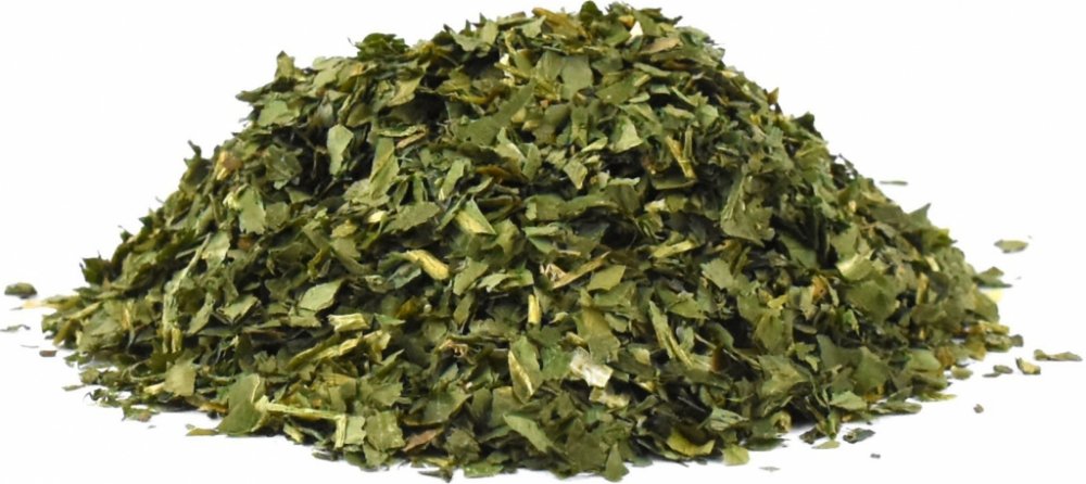 Sušená, řezaná nať česneku medvědího (Allium ursinium L.).