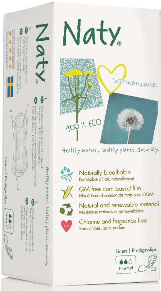 Prodyšný spodní plášť vložky je vyráběn z geneticky neupravovaného kukuřičného škrobu a zajišťuje efektivní ventilaci. Neobsahují umělé hmoty, chlór, parfémy ani latex a savé jádro neobsahuje superabsorbční polymer.
