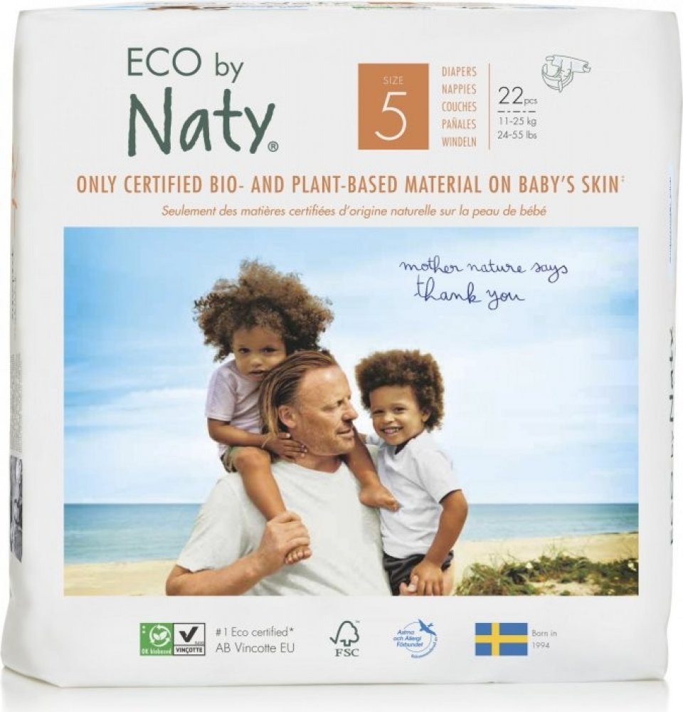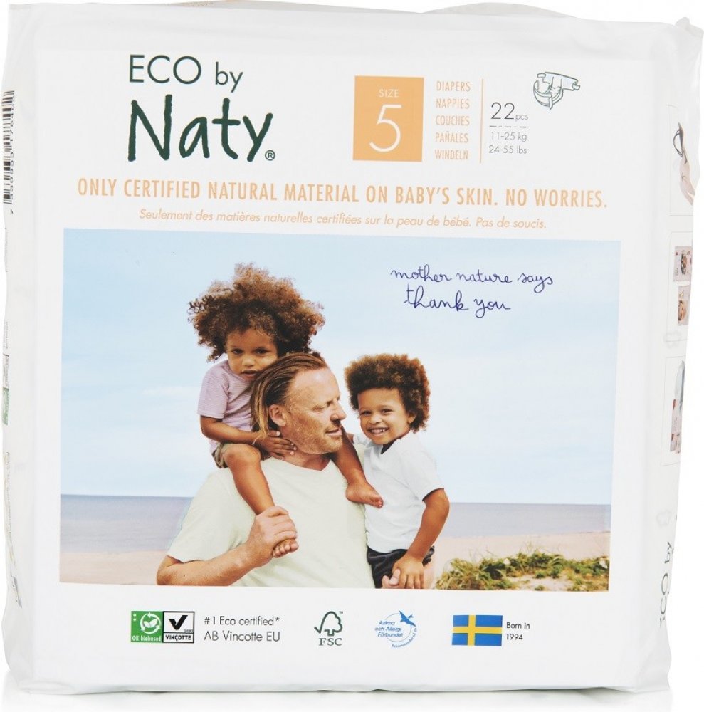 Šetrné, jemné, ekologické a nově i s mnoha praktickými a funkčními vylepšeními, to jsou oblíbené plenky švédské značky Eco by Naty. Díky vylepšenému jádru teď ještě více sají a jsou příjemnější na dotek, atraktivní skandinávský design potěší děti i rodiče a použité materiály se snáze rozkládají. Dopřejte vašemu děťátku padnoucí ekologické plenky, jejichž kvalitu potvrzuje množství certifikátů.