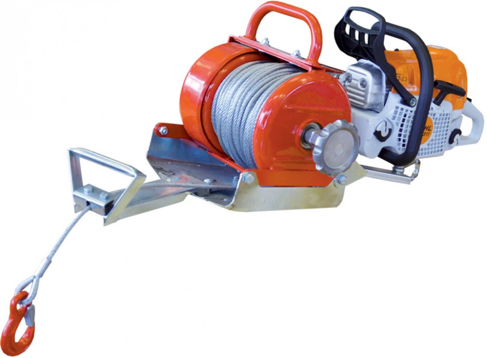 Malý, pevný a výkonný naviják s max. tažnou silou 1.200 kg, který se pomocí montážní soupravy snadno a rychle namontuje na motorovou pilu. Hmotnost bez pily je 27 kg, s pilou a lanem váží cca. 42 kg. Potřebný výkon motorové pily: od 3 kW (např. STIHL MS362, MS660)Cena včetně montážní sadyDodává se bez motorové pily a bez lanaNávod k použití